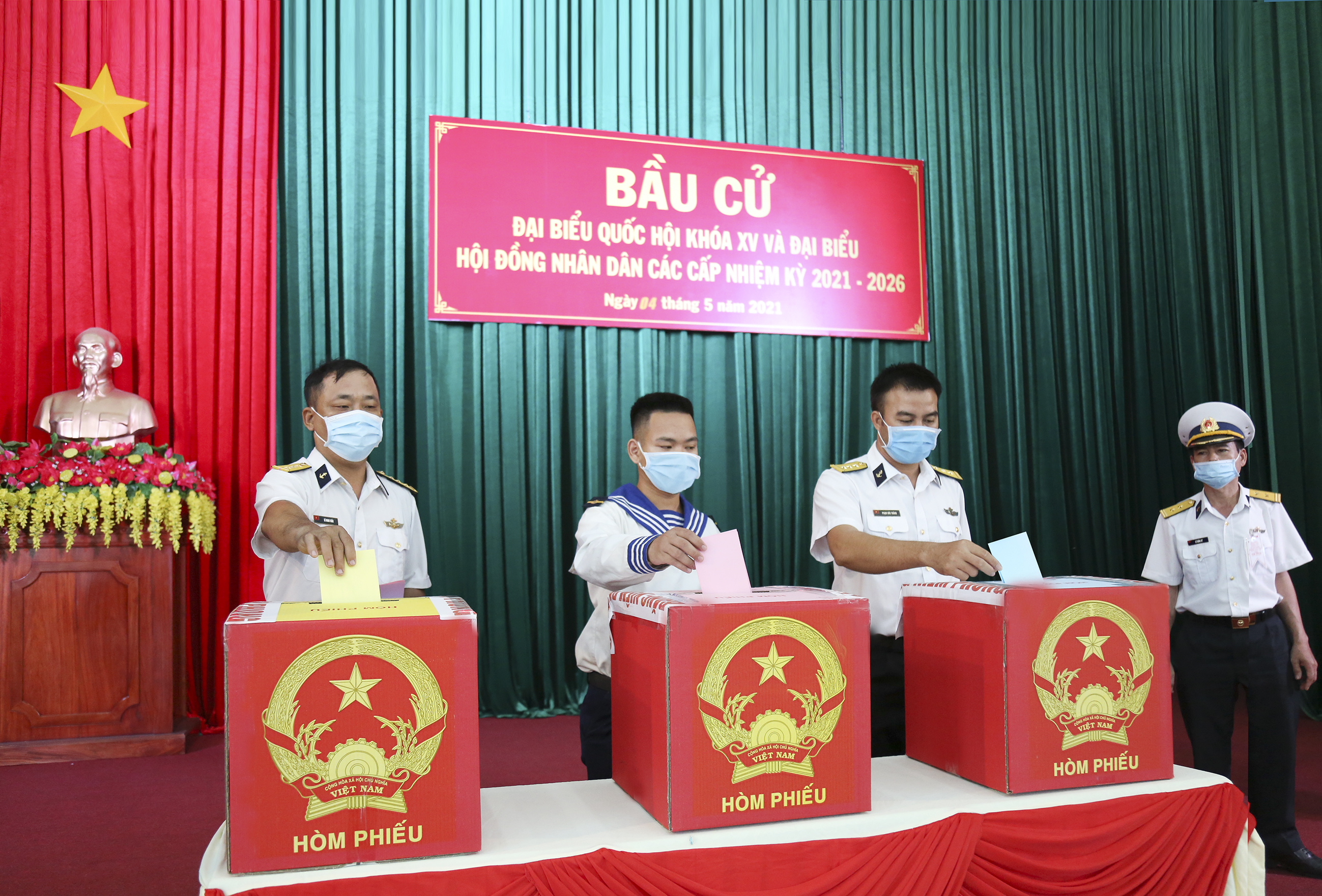 Cử tri tham gia bầu cử đại biểu Quốc hội khóa XV và đại biểu HĐND các cấp nhiệm kỳ 2021-2026 sớm tại Vùng 2 Hải quân